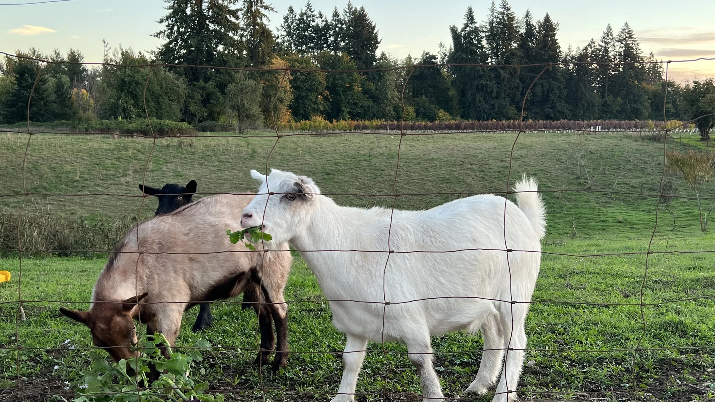 Come relax and enjoy the peace and quiet of the country in our 4 bedroom, 2.5 bathroom farmhouse. The property is a fourth-generation working hazelnut orchard, and while it's been upgraded with just the right amount of modern touches, it's retained all the warmth and coziness of grandma's farmhouse. Rest up in one of two bedrooms on the main floor, test out the binoculars and watch birds enjoy the garden from the large living room windows, curl up and read a book next to the gas fireplace, or host a family dinner in the dining room. There's plenty of space for your group too, with two additional bedrooms and a half-bath upstairs, as well as an office space and daybed. Guests are also able to use the garage which we’ve converted into a lounge and TV space. But you won't be spending all your time indoors, as you'll have access to the back deck/patio area (great for BBQs), basketball hoop, and 40 acres of hazelnut trees (that make for a stunning sunset stroll). Pets love the farm, too! And we love when they visit, but we always recommend they're kept on a leash when outside, as the property isn't fenced in. We also have a few goats roaming the pasture that our guests, especially the kiddos, love to feed treats to.